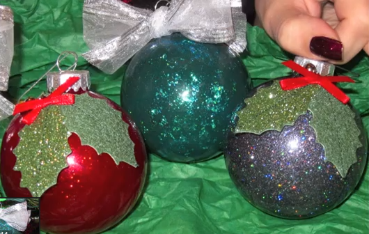 Una volta asciutta, riposizionare il gancio di metallo per appendere la pallina e decorare con fiocchi o foglie di pungitopo a piacere.
