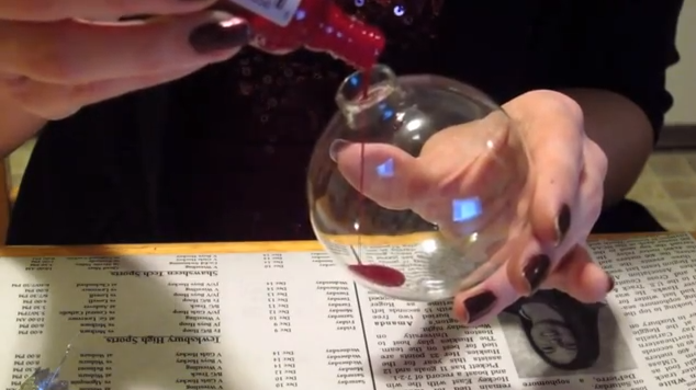 Diluire lo smalto con pochissimo solvente, poi versarne un po' dentro la pallina.