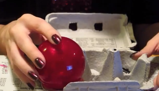 Lasciare asciugare la pallina a testa in giù appoggiata dentro al cartone per uova.